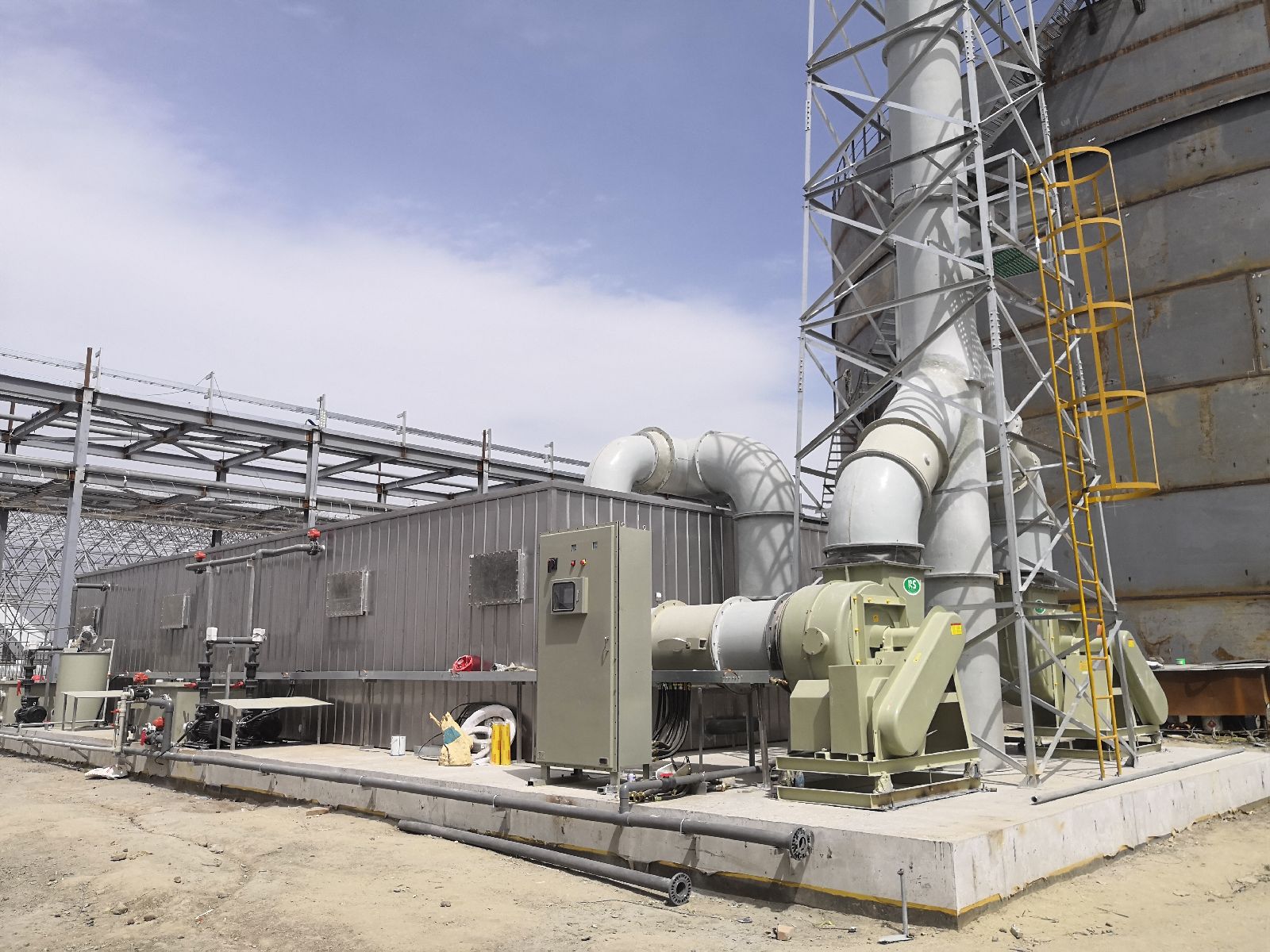 用于将经过生物除臭装置净化处理后的达标气体排放到大气中。排气筒的高度和直径根据相关标准和装置的处理能力确定,以保证排放的气体能够在大气中充分扩散,避免对周边环境造成影响。排气筒材质通常选用耐腐蚀、强度高的材料,并在顶部设置防雨帽,防止雨水进入排气筒内部。